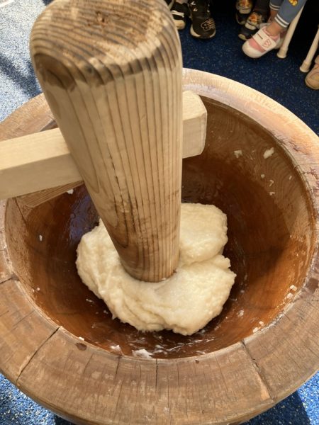お餅つきをしました。一年の締めくくり。来年のみんなの無病息災を願い、みんなで「よいしょ!」